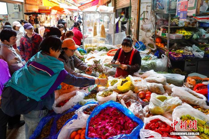 今日门客收购陈花类食材。中新社记者 李嘉娴 摄
