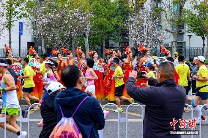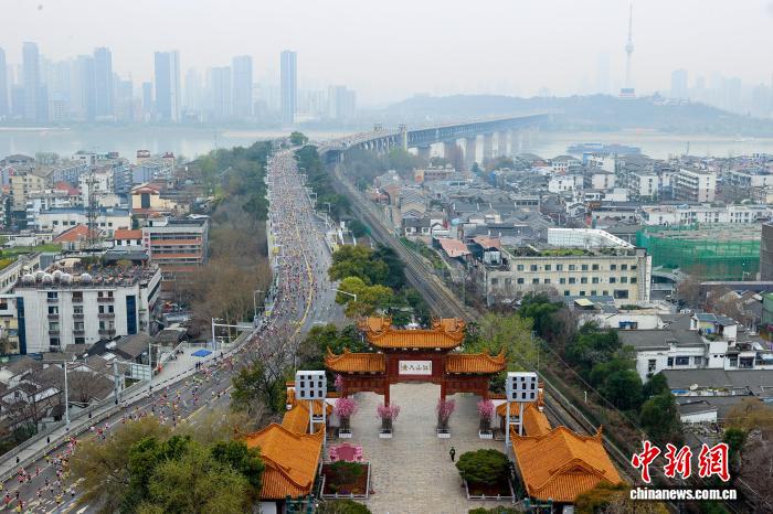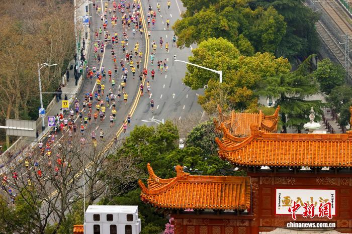 图为参赛选脚跑过武汉陌头。中新社记者 弛畅 摄